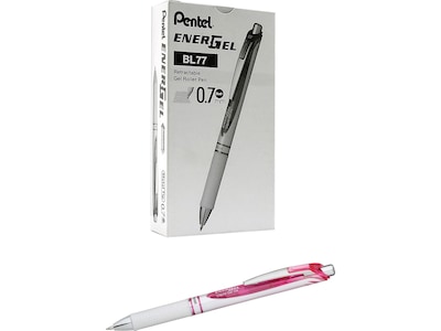 Keep these Pentel EnerGel retractable pink gel pens nearby thanks to the convenient clip for when you need to make your notes, revisions, and all writing stand out. A blend of liquid and gel inks produces rich, vivid lines that are quick-drying, perfect for left-handers. The simple-click design of these pens is easy to use and the smooth latex-free grip provides comfort and control for any writing task.