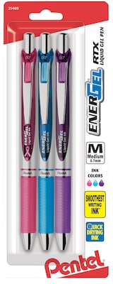 Pentel® EnerGel RTX Liquid Gel Pen, 0.7mm, Assorted colors, 3/Pack (BL77BP3M1)