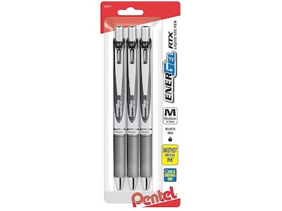 Make writing stand out with this 3-pack of Pentel EnerGel RTX medium-point black retractable gel ink pens.