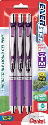 Help writing stand out by using this 3-pack of Pentel EnerGel medium point retractable purple gel-ink pens.
