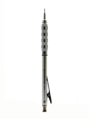 The premier drafting pencil for professionals and writing enthusiasts. Click the pencil top to reveal an extra-long 4mm fixed sleeve. Click the pocket clip to release the heavy spring mechanism and retract the tip. Finely chiseled metallic grip is inlaid with soft latex-free pads to cushion fingertips.. Refillable with Pentel Super Hi-Polymer Lead and Z2-1 refill eraser.