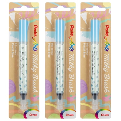 Pentel Milky Brush, Blue Ink, 3/Bundle (PTAXGFHBPPSX-3)