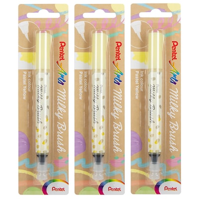Pentel Milky Brush, Yellow Ink, 3/Bundle (PTAXGFHBPPGX-3)