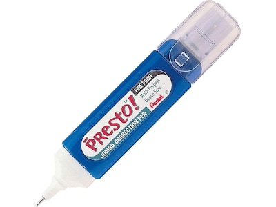 Cover up errors on financial forms, contracts, and other various documents with this correction pen. The white ink produces neat, clean corrections that are discreet on white paper, while the quick-drying formula prevents streaks and smudges. This Pentel PRESTO! JUMBO correction pen is large for long-lasting use and has a fine-point tip, so you can easily hide small text, writing, and other imperfections.