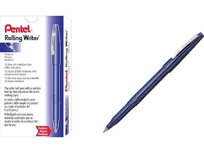 Pentel Rolling Writer Rollerball Pens, Medium Point, Blue Ink, Dozen (R100-C)