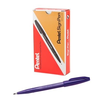 Pentel® Sign Pen® Point pen in violet color features a durable fiber tip and has smooth flowing as well as water based ink for hours of writing and drawing.