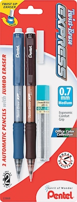 Pentel Twist-Erase EXPRESS Mechanical Pencil, 0.7mm, #2 Medium Lead, 2/Pack (QE417LEBP2)