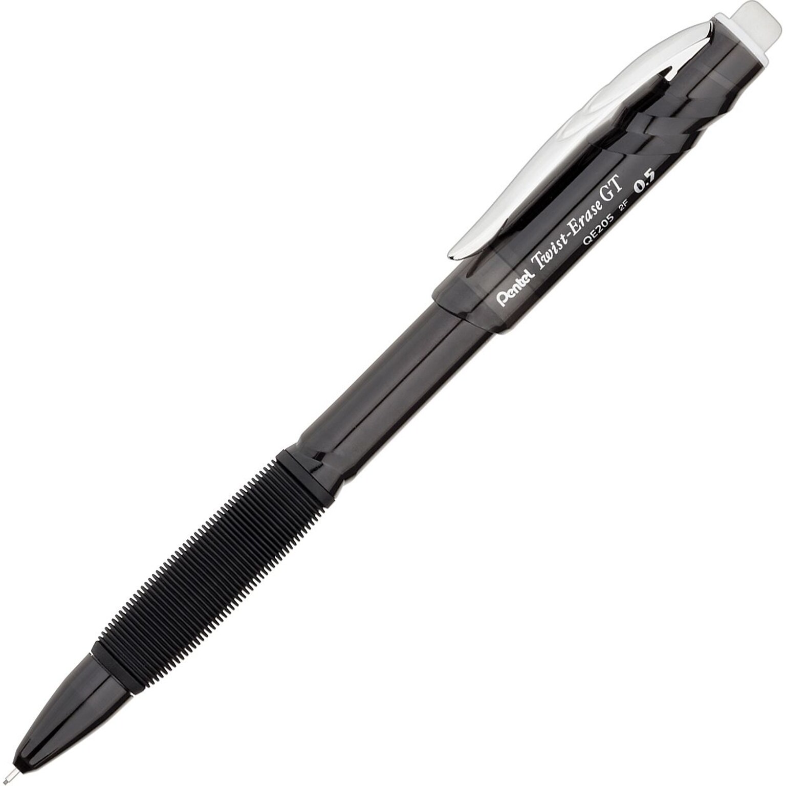Pentel Twist Erase GT Mechanical No. 2 Pencil, Fine Point, Black Barrel, Dozen (QE205A)