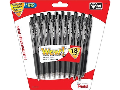 Fill out forms and other paperwork with this 18-pack of Pentel WOW! retractable medium-point black ballpoint pens.