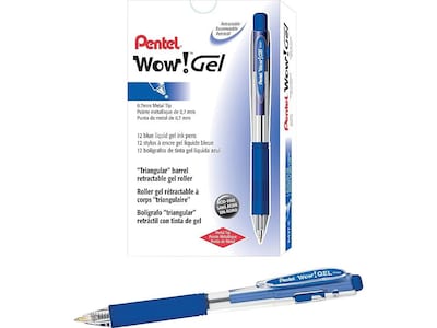 Write with vivid color using this pack of 12 Pentel WOW! medium-point retractable blue gel-ink pens.