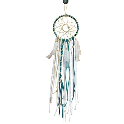 - Teal and tan macrame weave easily together to create this pretty dream catcher
