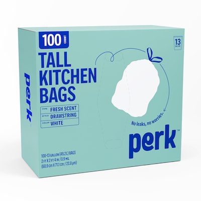 Fight the funk in shared office kitchens with these 100 fresh-scented Perk™ drawstring tall kitchen trash bags.