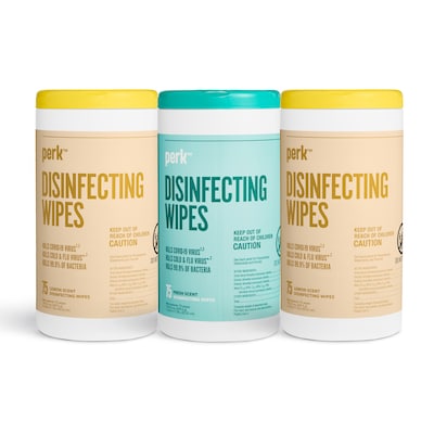 Perk™ Disinfecting Wipes Value Pack, 75 Wipes/Canister, 3 Canisters/Pack