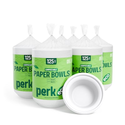 Perk™ Eco Compostable Paper Bowls, 12 Oz., White, 750/Carton (PK61285CT)