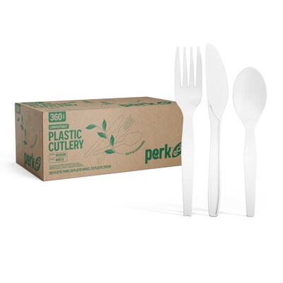 Perk™ Eco Compostable PLA Assorted Cutlery, Medium-Weight, White, 360/Pack (PK56205)