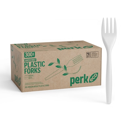 Feel good about hitting sustainability goals with these Perk™ compostable forks.