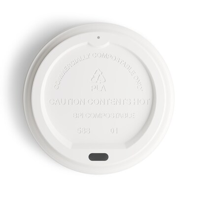Perk™ Eco Compostable Plastic Hot Cup Lid, 10/12/16 Oz., White, 50/Pack (PK56218)