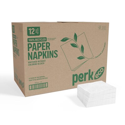 Perk™ Eco Recycled Lunch Napkin, 1-ply, White, 400 Napkins/Pack, 12 Packs/Carton (CW20179-CT)