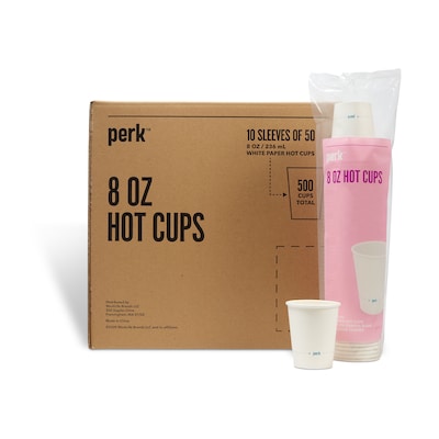 Perk™ Paper Hot Cups, 8 oz., White, 50/Sleeve, 10 Sleeves/Carton (PK59142CT)