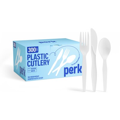 Perk™ Polystyrene Assorted Cutlery, Medium-Weight, White, 300/Pack (PK56406)