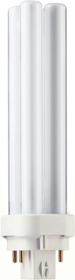 Philips Lighting Non integrated 18-Watt PL-C cluster 4-Pin G24q-2 base compact fluorescent lamp offers 1250 initial Lumens for crisp light output. It has current rating of 0.23 Amp. Lamp has color rendering index of 82. Lamp with 3000K color temperature rating radiates warm white light to the surrounding. It measures 142.9 mm x 27.1 mm. Lamp in opaque finish, comes with average life of 12000 hours.
