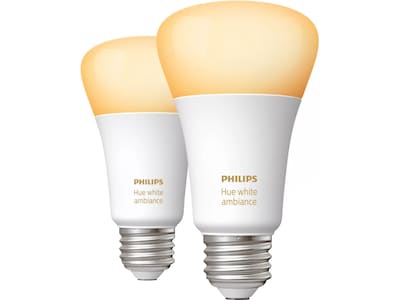 Philips Hue 60W Equivalent A19 LED Smart Light Bulb, Warm White, 2/Pack (548560)