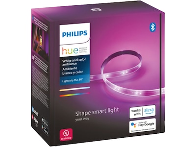 Get colored smart light anywhere in your home with the latest Philips Hue white and color ambiance Bluetooth-enabled lightstrip, which includes a power adapter. The Hue lightstrip is flexible, allowing you to bend, shape, cut, and extend it (only compatible with the Lightstrip Plus Extension V4) to adapt to your room and decor. The Hue lightstrip features Bluetooth capability for instant light control in one room. Connect to a Hue Bridge to unlock the full suite of smart light features, including the ability to control up to 50 lights throughout your whole home — even while you're away.