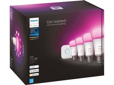 Philips Hue White Starter Kit, A19 16 Million Colors 10.5W E26 (563296)