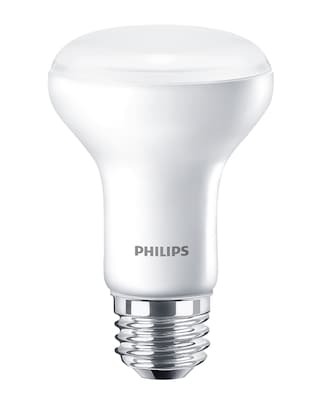 Philips Lighting Lightweight 6-Watt R20 E26 single contact medium screw base LED reflector lamp in frosted color, offers 450 Lumens of light output. This dimmable lamp has voltage rating of 120 Volts and current rating of 65 Milli-Amps. It has color rendering index of 80. This lamp with 2200-2700 K color temperature rating radiates warm white light to the surrounding. It emits or distributes light at beam angle of 90 degree. This lamp measures 101 mm x 65 mm. It has average life of 25000 hours. This lamp is suitable for accent and downlighting. Lamp is Energy Star rated.