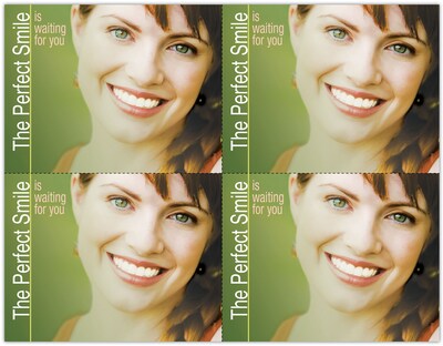 Attention-getting postcard captures your patients attention. The back of the postcard is blank so you can add a personalized message, using your own Laser Printer. Uncoated stock, perforated sheets. Four cards to an 8-1/2" x 11" sheet. 100 cards. Detached size: 4-1/4" x 5-1/2".