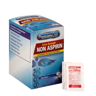 Reduce fevers and relieve pain with these 50 packets of Physicians Care extra-strength nonaspirin tablets.