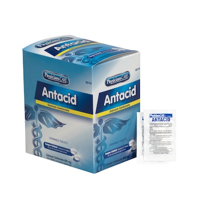 PhysiciansCare Antacid Chewable Tablets, 2/Packet, 50 Packets/Box (90089)