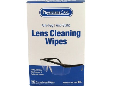 PhysiciansCare Lens Cleaning Wipes, 5" x 7", 100/Box (91295)