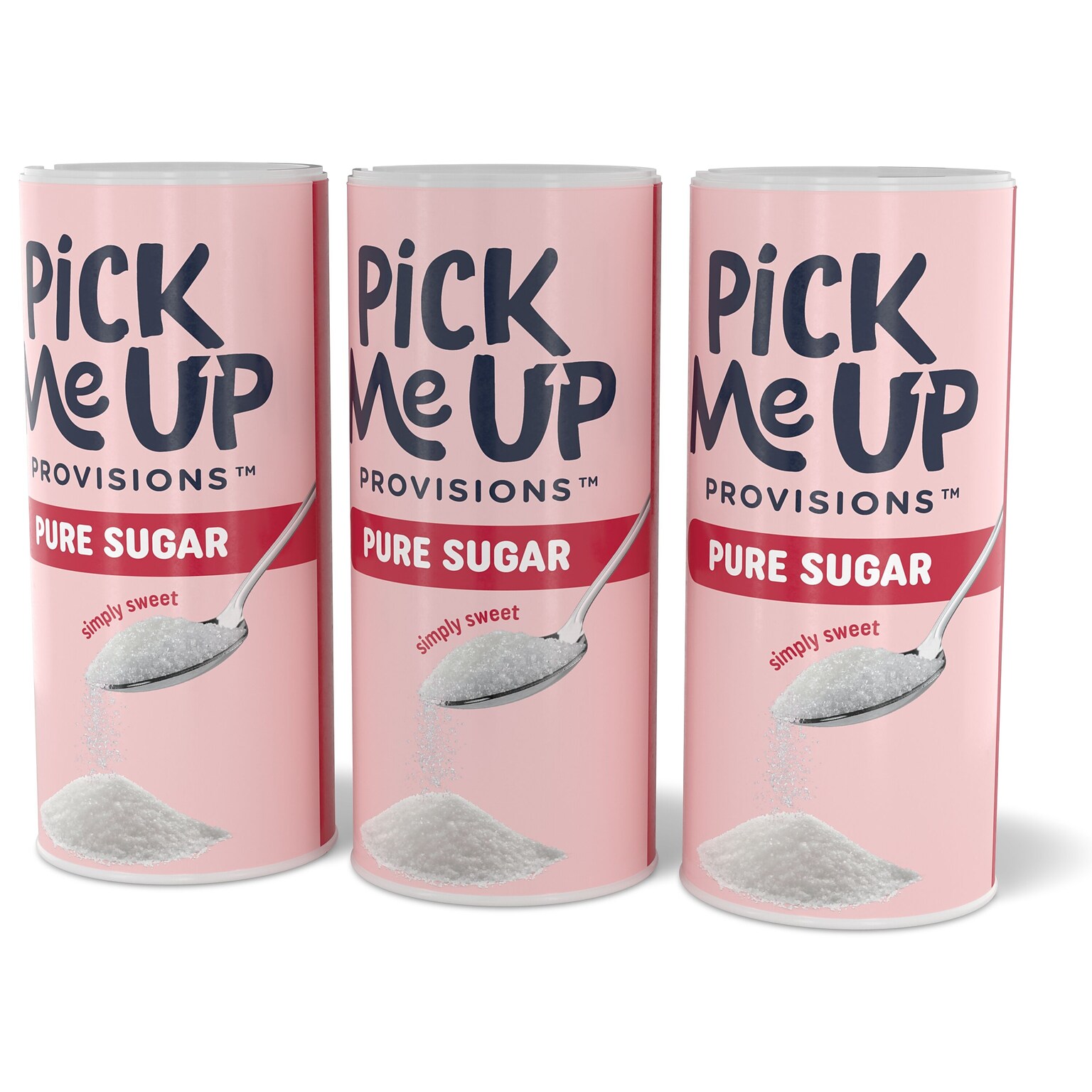 Make each day a little sweeter with a 3-pack of Pick Me Up Provisions Sugar in 20-oz. canisters Keep the good times flowing in the breakroom, waiting room or home workspace with this generous 3-pack of Pick Me Up Provisions pure sugar in 20-ounce canisters. Your colleagues will enjoy pouring 100% pure cane granulated sugar into their coffee or otherhot drink to make it just right for their taste. The easy-pour flip-top lid keeps your sugar from spilling all over the counter, and it keeps the sugar fresh while also keeping out dust, bugs and debris. Natural sweeteners like sugar are great for perking up coffee and tea, so adding this to your breakroom repertoire will give everyone a pretty sweet deal.