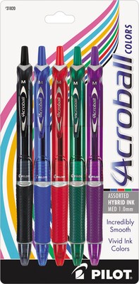 Pilot Acroball Colors Advanced Ink Retractable Ballpoint Pens, Medium Point, Assorted Ink, 5/Pack (31820)