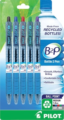 Pilot B2P Bottle 2 Pen Retractable Ballpoint Pens, Medium Point, Assorted Ink, 5/Pack (32814)