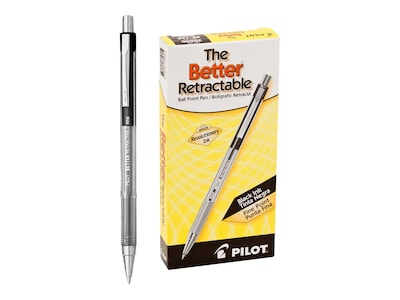 Fill out charts, forms and take on other writing projects with this 12-pack of Pilot Better 0.7mm fine-point retractable black ballpoint pens.