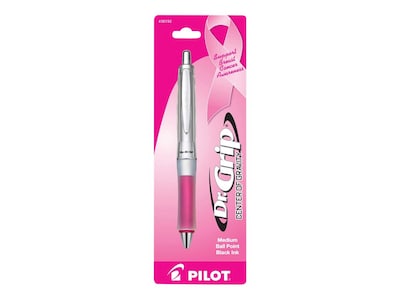 Make clear, smooth strokes by using this medium-point BCA ballpoint pen .A weight-distributing format offers balanced, comfortable writing, and the 1.0mm medium-point tip provides smooth ink flow with every stroke. This Pilot Dr. Grip Center of Gravity BCA retractable pink-barrel pen has black ink, so your notes stand out boldly against white paper.