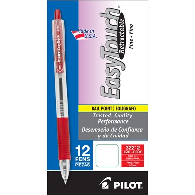 Pilot EasyTouch Retractable Ballpoint Pens, Fine Point, Red Ink, Dozen (32212)