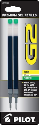 Pilot G2 Gel-Ink Pen Refill, Fine Tip, Green Ink, 2/Pack (77243)