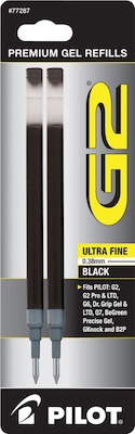 Pilot G2 Gel-Ink Pen Refill, Ultra Fine Tip, Black, 2/Pack (77287)