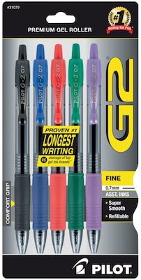 Pilot G2 0.7mm five pack of assorted inks.