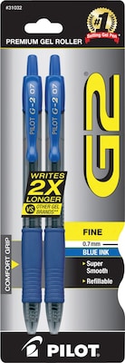 Pilot G2 Retractable Gel Pens, Fine Point, Blue Ink, 2/Pack (31032)
