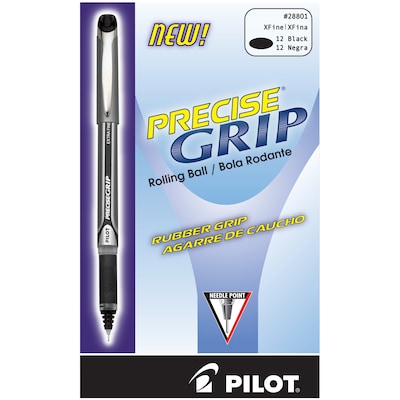 Pilot Precise Grip Rollerball Pens, Extra Fine Point, Black Ink, Dozen (28801)