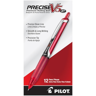 Grade exams, edit papers and write notes with this 12-pack of Pilot Precise V5 extra-fine-point 0.5mm needle-style red rollerball pens.
