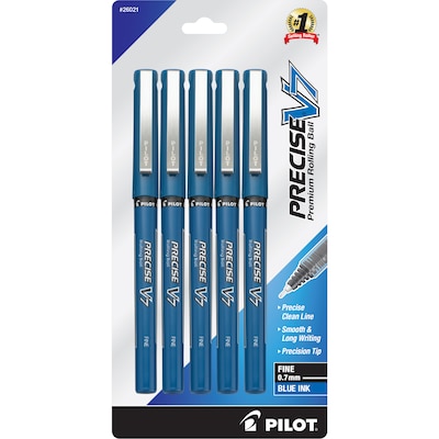 Pilot Precise V7 Rollerball Pens, Fine Point, Blue Ink, 5/Pack (26021)