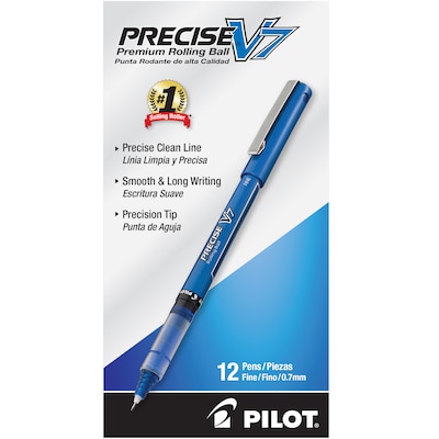 Glide across paper with this 12-pack of Pilot Precise V7 fine-point blue premium rolling ball stick pens.