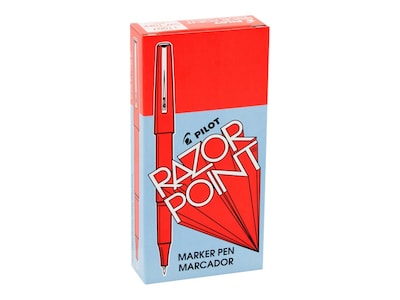 Write with precision by using this red fine point felt pen, which features an ultra-fine fiber nub to deliver a high-precision ink flow. The vibrant red color helps notes to stand out when adding comments to paperwork, editing documents, or signing a card. A strong, durable plastic barrel makes this Pilot Razor ultra-fine line felt pen durable for long-term use.