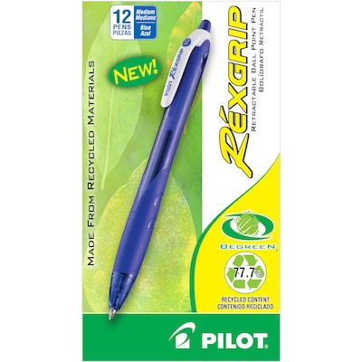 Pilot RexGrip BeGreen Retractable Ballpoint Pens, Medium Point, Blue Ink, Dozen (32371)