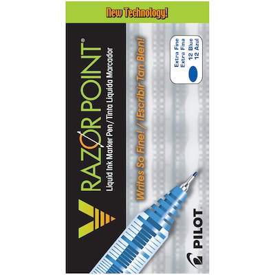 Produce neat, clear strokes from any angle with this 12-pack of Pilot V Razor Point extra-fine-point 0.5mm blue-ink gray-barrel marker pens.